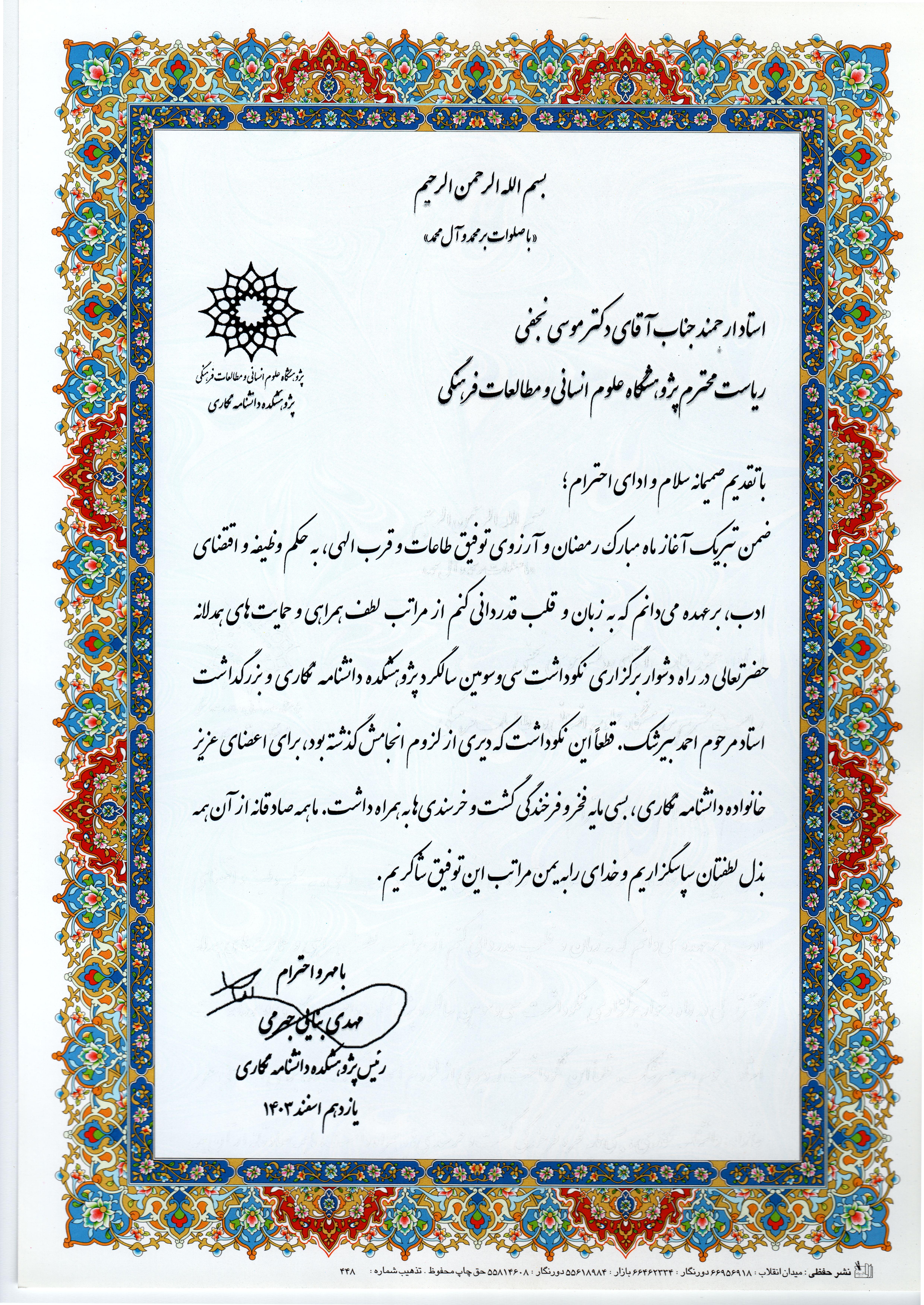 تقدیر و تشکر از ریاست محترم پژوهشگاه در برگزاری نکوداشت «سیوسومین سال تأسیس پژوهشکده دانشنامهنگاری» تقدیر و تشکر از ریاست محترم پژوهشگاه در برگزاری نکوداشت «سیوسومین سال تأسیس پژوهشکده دانشنامهنگاری» ۱۳ اسفند ۱۴۰۳ | ۱۰:۲۰ کد : ۲۶۳۴۶ تازهها ارسال به دیگران نام شما ایمیل شما ایمیل دریافتکننده ارسال انصراف تعداد بازدید:۱۶۶