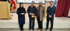 در ادامه، آقایان دکتر مهدی بنایی جهرمی و دکتر محسن بهلولی فسخودی و سرکار خانم دکتر آزیتا افراشی، تقدیرنامه و لوح یادبود سرکار خانم نسترن حاجیزاده را به ایشان تقدیم کردند.