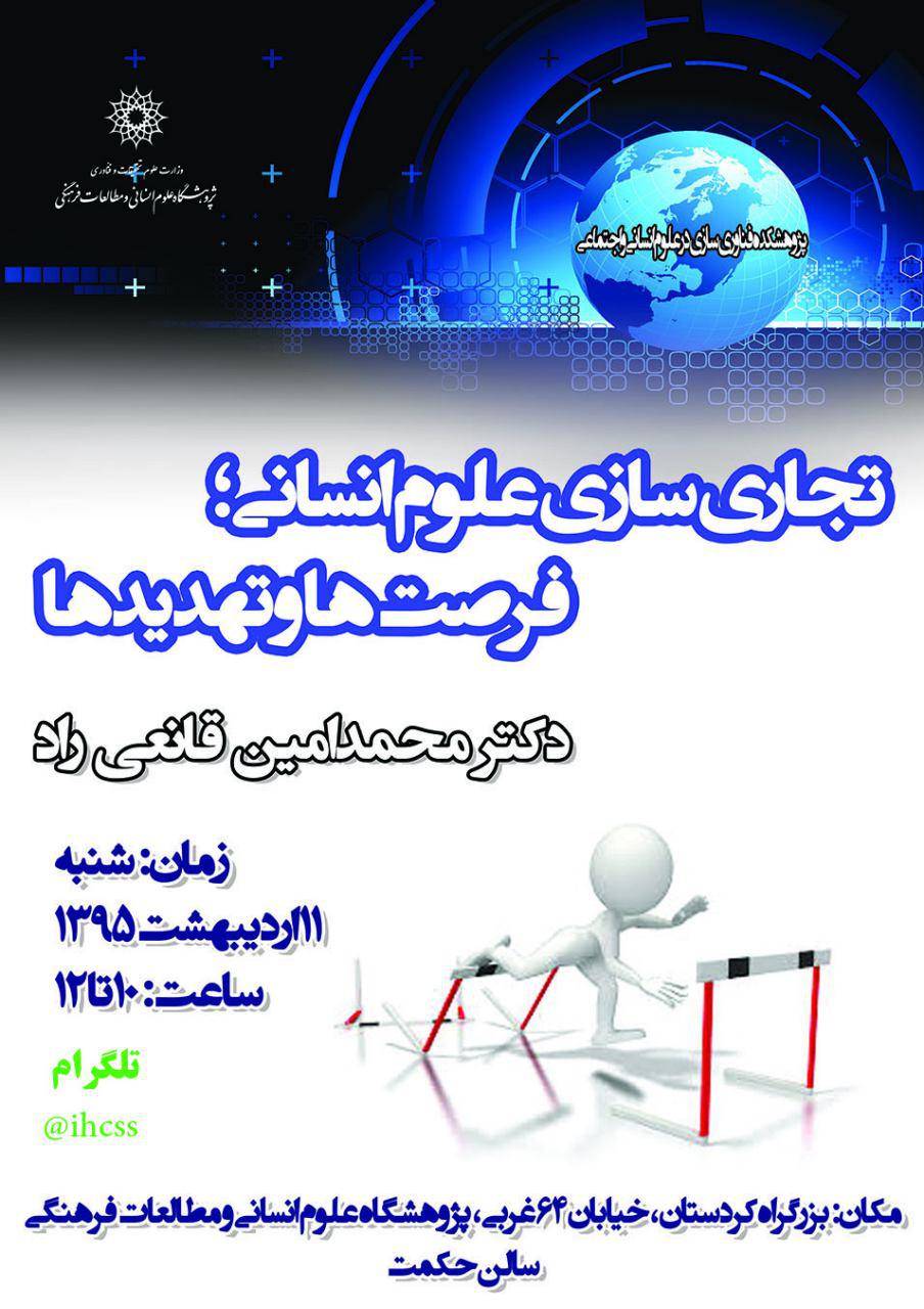 سخنرانی با عنوان تجاریسازی علوم انسانی؛ فرصتها و تهدیدها برگزار می شود