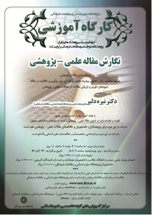 کارگاه آموزشی نگارش مقاله علمی - پژوهشی