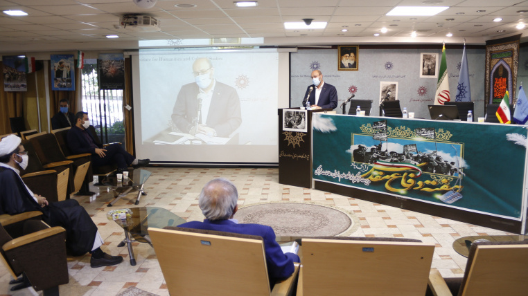 دکتر قبادی، رئیس پژوهشگاه، به‌عنوان دومین سخنران، ضمن خوشامدگویی به میهمانان و حاضرین در جلسه حضوری و مجازی با اشاره به شرایط کشور در خصوص مبارزه با ویروس منحوس کرونا، گرامی‌داشت دفاع مقدس امسال را متفاوت از سال های گذشته برشمرد که حال و هوای تازه‌تری دارد. وی گفت: گوهر ایثار و از خودگذشتگی و فرهنگ شهادت همچنان در بین آحاد مردم ایران قابل مشاهده است. فضای جبهه مجدداً زنده و احیا شده و باوجود خستگی، مدافعان سلامت حاضر به ترک محل خدمت خود نیستند. فرهنگ شهادت‌طلبی دوباره احیا شده و نگاه جامعه به پزشکان و پرستاران ترقی پیدا کرده است. وی با اشاره به بیانات اخیر رهبر معظم انقلاب در سالگرد دفاع مقدس، محورهای بیاینات معظم له را شامل این موارد توصیف کرد: 1- حق شناسی امام (ره) و شهدا و ایثارگران، 2- وفاداری نسبت به آرمان‌ها و اهداف رزمندگان 3- آرامان‌گرایانه و عقلانی بودن فعالیت‌ها در طول دفاع مقدس 4- علمی و پایه‌دارو مستدل بودن 5- توجه به شعاع معنوی فرهنگ دفاع مقدس 6- توجه به وجه خودجوش مردمی.