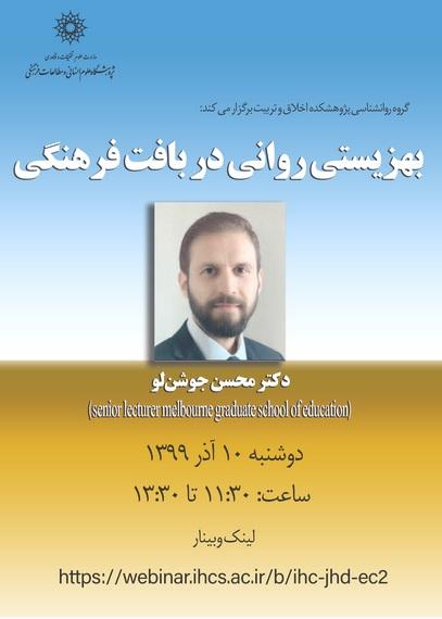 بهزیستی روانی در بافت فرهنگی /دکتر محسن جوشن لو/۱۰/آذرماه/ ۹۹ ۱۰ آذر ۱۳۹۹ | ۱۱:۴۰ کد : ۱۹۹۸۷ پژوهشکده اخلاق و تربیت چند رسانه ای ارسال به دیگران نام شما ایمیل شما ایمیل دریافتکننده ارسال انصراف تعداد بازدید:۱۷۹۵