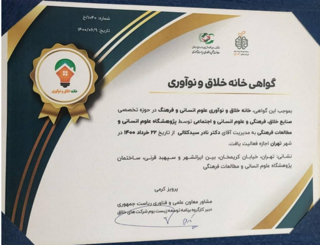 صدور دومین گواهی خانه‌ی خلاق و نوآوری