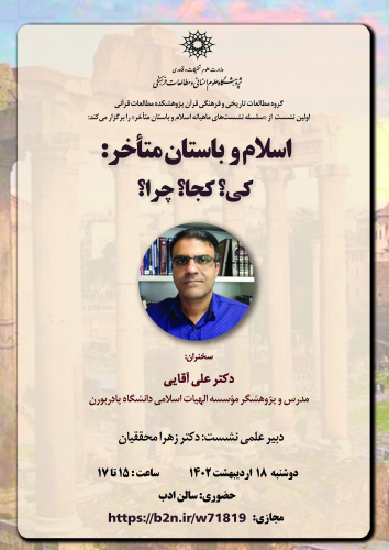 گروه مطالعات تاریخی و فرهنگی قرآن پژوهشکده مطالعات قرآنی اولین نشست از سلسله نشستهای ماهیانه اسلام و باستان را با شرح و عنوان زیر برگزار میکند: