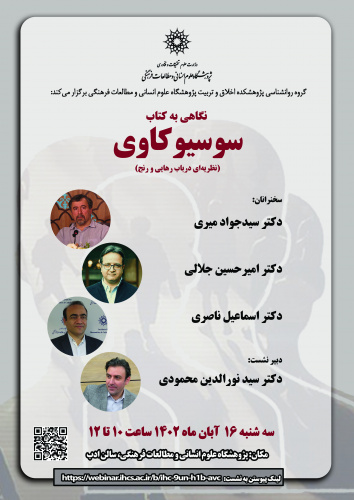 نشست نقد و بررسی کتاب «سوسیوکاوی» نوشته سیدجواد میری، به همت گروه روان‌شناسی پژوهشکده اخلاق و تربیتِ پژوهشگاه علوم انسانی و مطالعات فرهنگی، 16 آبان ماه 1402 با حضور دکتر امیرحسین جلالی، دکتر اسماعیل ناصری، دکتر سیدنورالدین محمودی و دکتر سیدجواد میری، نویسنده کتاب، در برگزار شد.
