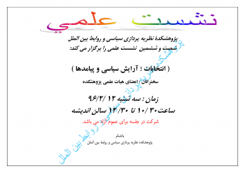 شصت وششمین نشست پژوهشکده نظریه پردازی سیاسی و روابط بین الملل انتخابات؛ آرایش سیاسی و پیامدها ۱۱ اردیبهشت ۱۳۹۶ | ۱۶:۲۳ کد : ۱۵۱۲۲ خبر ارسال به دیگران نام شما ایمیل شما ایمیل دریافتکننده ارسال انصراف تعداد بازدید:۱۱۰۷ فایل های ضمیمه نشست علمی66